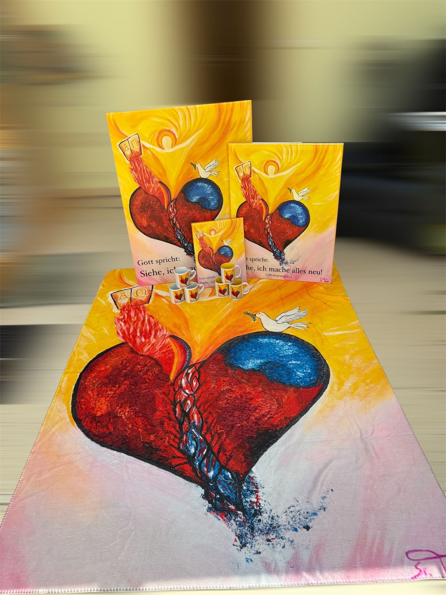 Ausserdem kann man neben Postkarten und einen Segensbrief, Stickers und Magneten zusätzlich ihr Bild als Poster, auf Leinwand, auf Tassen und Kuscheldecke erwerben.