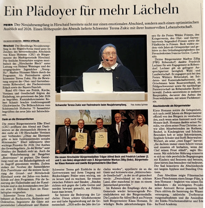 06.07. Auszeichnung für Schwester Teresa- Mutmacherin für viele- Nordbayerische Nachrichten