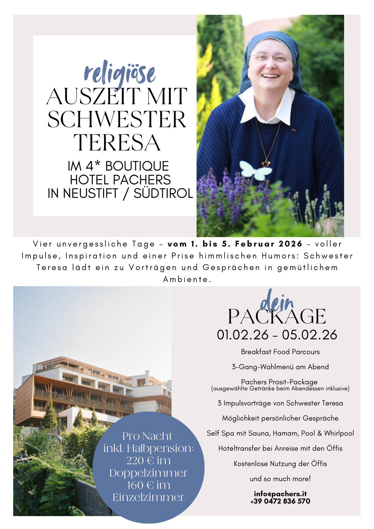 Bitte direkt im Hotel anmelden per Mail >>>Mirjam@pachers.it