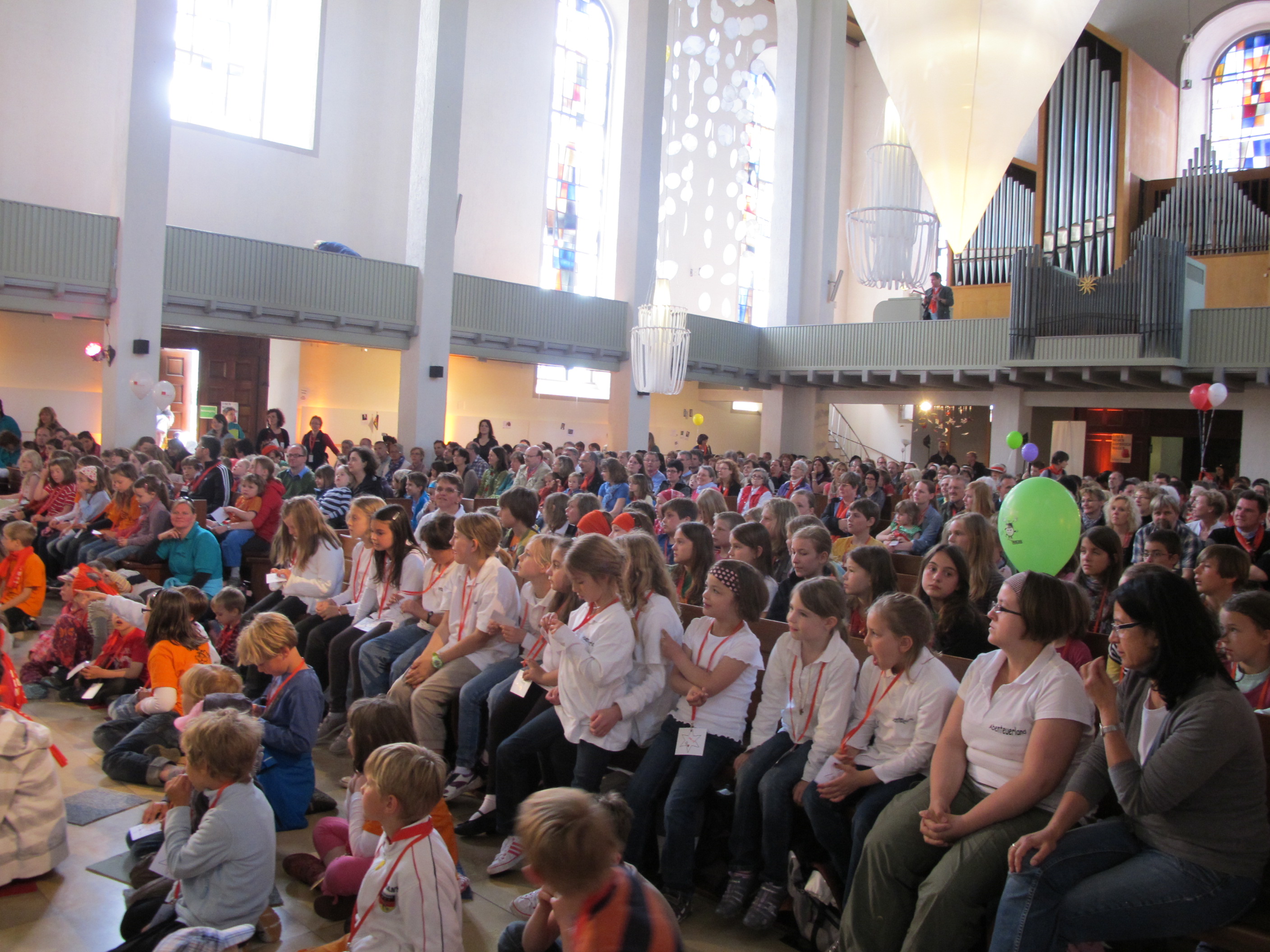 Volle Kirche und begeisterte 150 Kinder / Wegen Überfüllung mussten viele draußen bleiben/ Schwester Teresa predigt vom "Aufbruch" für Kinder/ Pfarrer Reus wie in alten Zeiten feiert mit Begeisterung die Eucharistie für Familien/