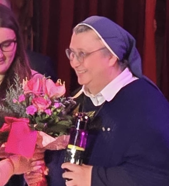 Laudatio : Nächstenliebe und echte Menschlichkeit, denn sie hilft Menschen im Alltag. Weil sie den Glauben nicht von oben herab erklärt, sondern mitten ins Leben bringt. Sie macht ununfassbar viel : Mutig, unkonventionell, offen und ganz ehrlich - sie ist einfach cool. Ich finde es persönlich beeindruckend, wie sie selbstverständlich Grenzen überschreitet, um Kirche und Alltag, Ernst und Leichtigkeit, Tiefe und Humor zu verbinden. Die Jury zeichnet dich heute, liebe Schwester Teresa, aus, weil du ein Vorbild bist: warmherzig, nahbar, unfassbar inspirierend. Herzlichen Glückwunsch zum Fräulein-Kurvig-Preis 2025 für Nächstenliebe.